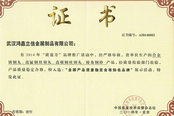 武漢鴻鑫立信金屬制品有限公司主要從事鋼丸、鋼絲切丸、鋼砂等除銹防腐耗材的生產(chǎn)和銷售。公司所有產(chǎn)品均通過ISO9001**質(zhì)量認(rèn)證,2014年更獲得了第三屆中國金屬磨料行業(yè)具有影響力品牌-華尊獎。董事長陳群芝女士從事行業(yè)17年來專注為客戶節(jié)約鋼丸消耗成本,2014年獲得了華尊獎-中國品牌建設(shè)實(shí)踐百名創(chuàng)新很好企業(yè)家的榮譽(yù)。服務(wù)過的國家建設(shè)項(xiàng)目有:北京鳥巢體育館、遼寧號航母、杭州灣跨海大橋、南海軍艦、成都雙流**機(jī)場、南車集團(tuán)動車檢測中心、武漢火車站、武漢天興洲大橋等,同時服務(wù)的行業(yè)囊括橋梁制造、船舶制造、汽車制造、火車車輛制造、大理石打磨、鑄件清砂、各種機(jī)械制造表面清理等。鴻鑫鋼丸,值得信賴。
